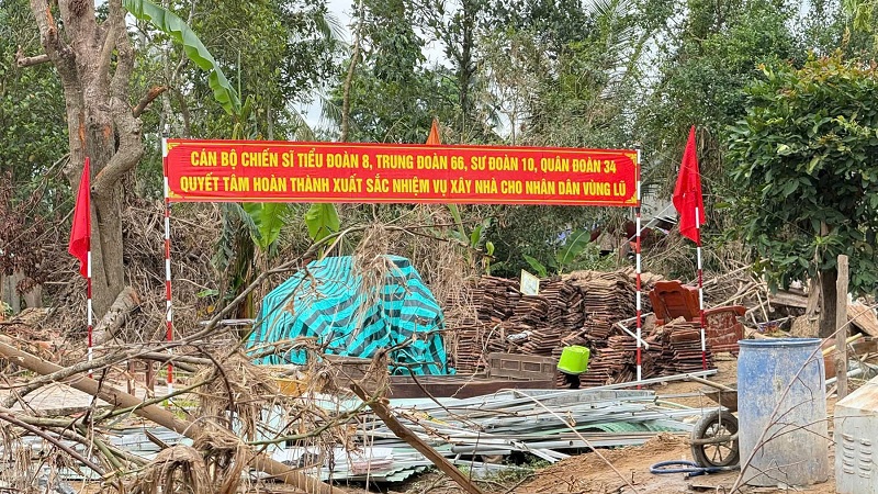 Giữa những câu chuyện nặng trĩu ấy, tôi lại được chứng kiến một hình ảnh khác, lặng lẽ mà sáng lên hy vọng. Những ngày ở vùng lũ, lực lượng công an, bộ đội có mặt khắp nơi. Công an dọn rác, nạo vét bùn non, mở đường cho dân và các đoàn cứu trợ. Bộ đội thì dựng nhà giúp dân. Hàng chục căn nhà được xây dựng khẩn trương, thợ xây chính là những người lính trẻ.
