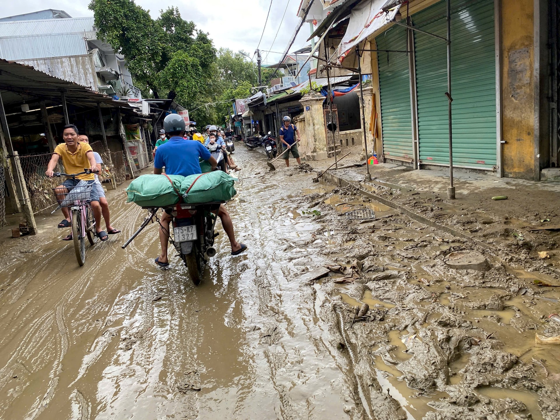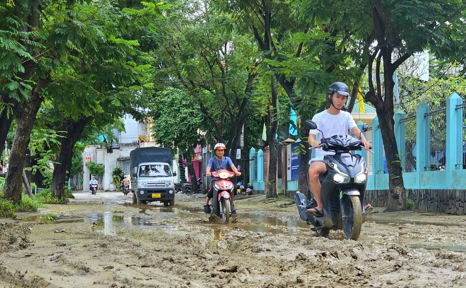 Tại các khu vực thấp trũng của phường Phú Xuân, bùn đất dày đặc phủ kín mặt đường, có nơi dày từ 10-20cm, khiến việc đi lại gặp rất nhiều khó khăn. Những chiếc xe máy, xe đạp phải dắt bộ; người dân phải lội bùn để đến chợ, đi làm hoặc dọn dẹp nhà cửa.