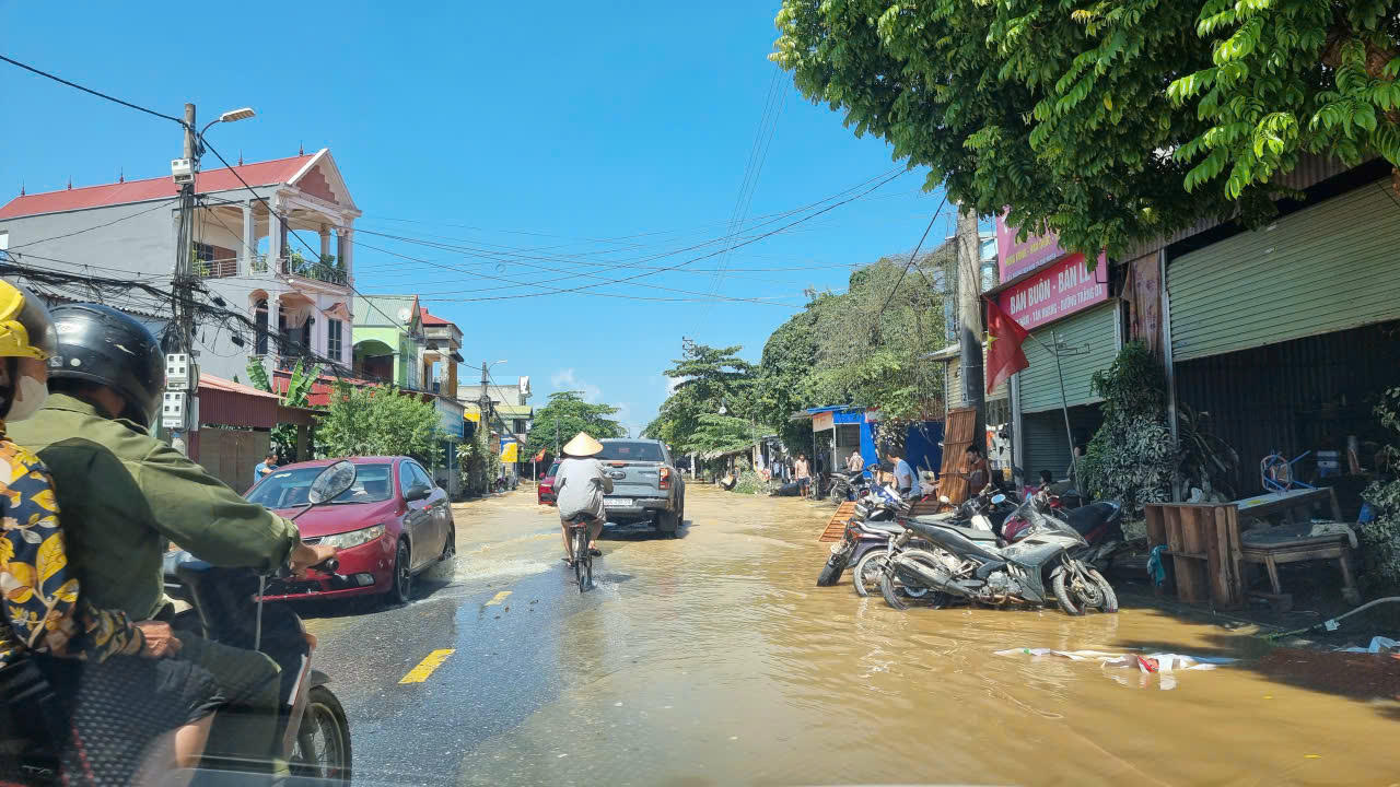 Chiều ngày 9/10, đường Núi Voi vẫn còn ngập nước. nhưng đã có thể lưu thông được. Ảnh: TN.