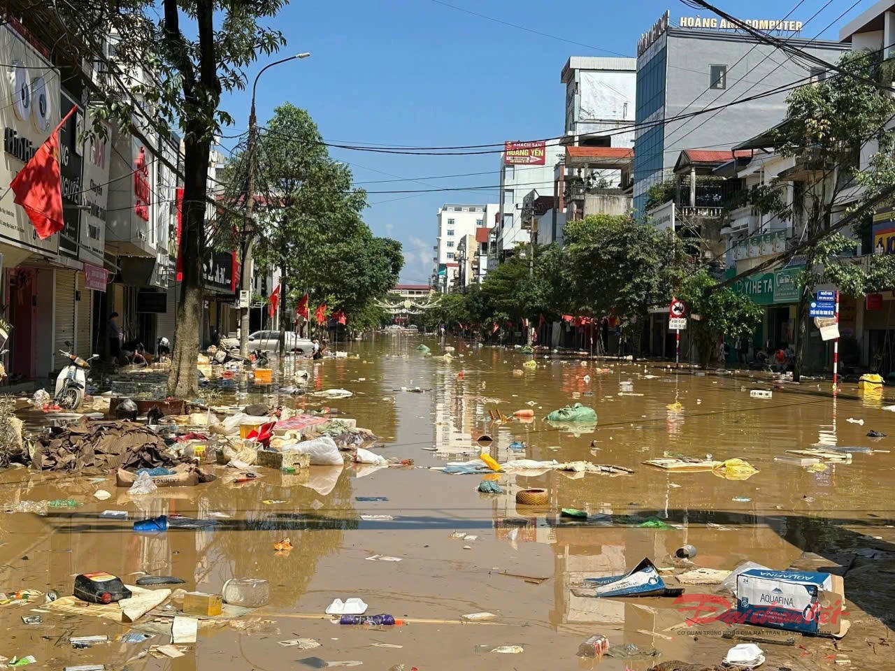 Đường phố Thái Nguyên sau bão ngập trong bùn và rác. Video: Toán Nguyễn.