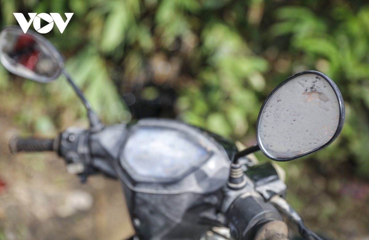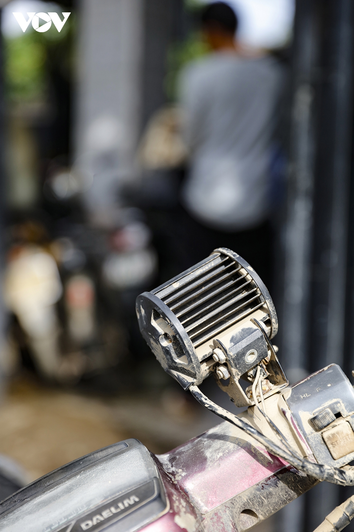 Vệt bùn còn đọng ở đèn gắn thêm trên xe