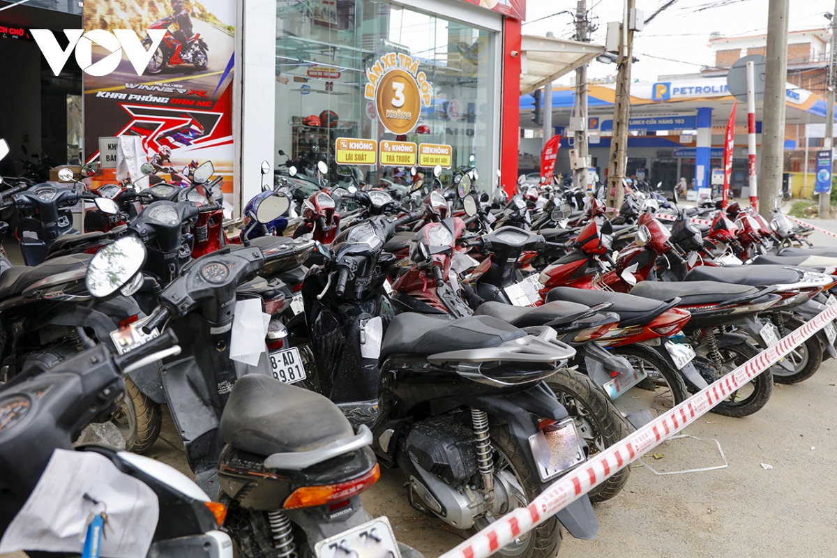 Đại lý xe máy ở đường Nguyễn Trãi tiếp nhận số lượng xe "khủng" cần phục hồi, bảo dưỡng sau trận lũ dữ vừa qua