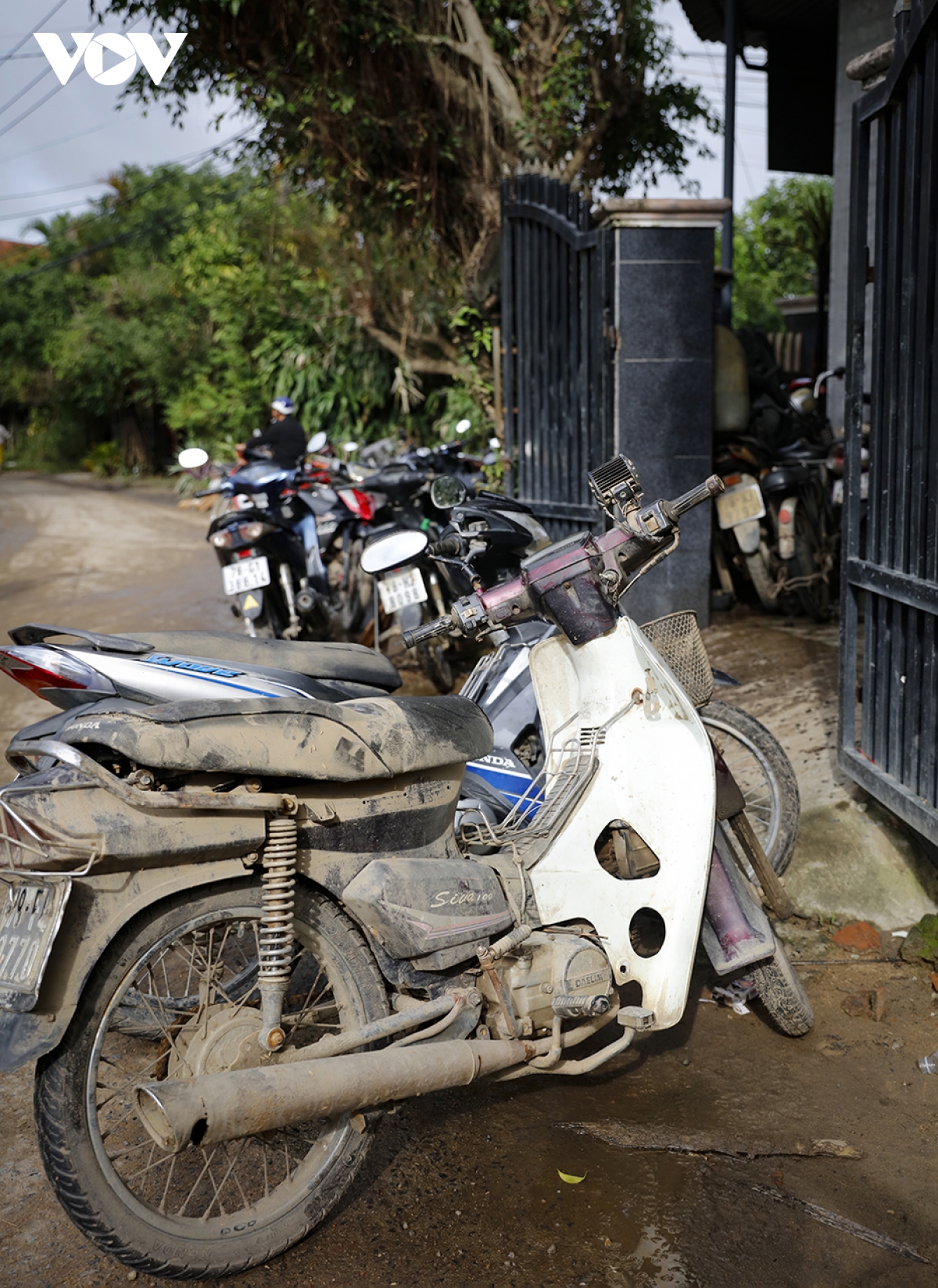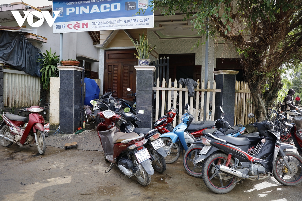 Anh Đạt (mũ đỏ) ở xã Hòa Thịnh (huyện Tây Hòa, tỉnh Phú Yên cũ) nơi "rốn lũ" vừa qua cho biết, không còn chỗ để xe nhưng không lẽ lại từ chối bà con chòm xóm.