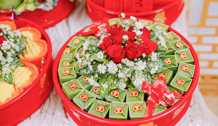 Bánh phu thê thường được đặt trong tráp cưới hỏi.