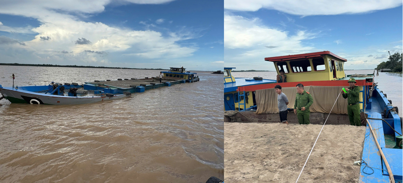 Đến tối 24/10, trên tuyến sông Tiền qua xã An Bình, tổ công tác phát hiện 1 ghe gỗ không có số đăng ký có gắn hệ thống bơm hút cát tự chế khai thác khoáng sản (cát sông) trái phép. Hai người có mặt trên ghe gỗ không xuất trình được giấy tờ có liên quan đến việc khai thác cát sông (khối lượng cát đo được trong khoang chứa hơn 4m3). Lực lượng chức năng cũng phát hiện 1 ghe gỗ chứa hơn 12m3 cát sông chưa xác định được chủ sở hữu.