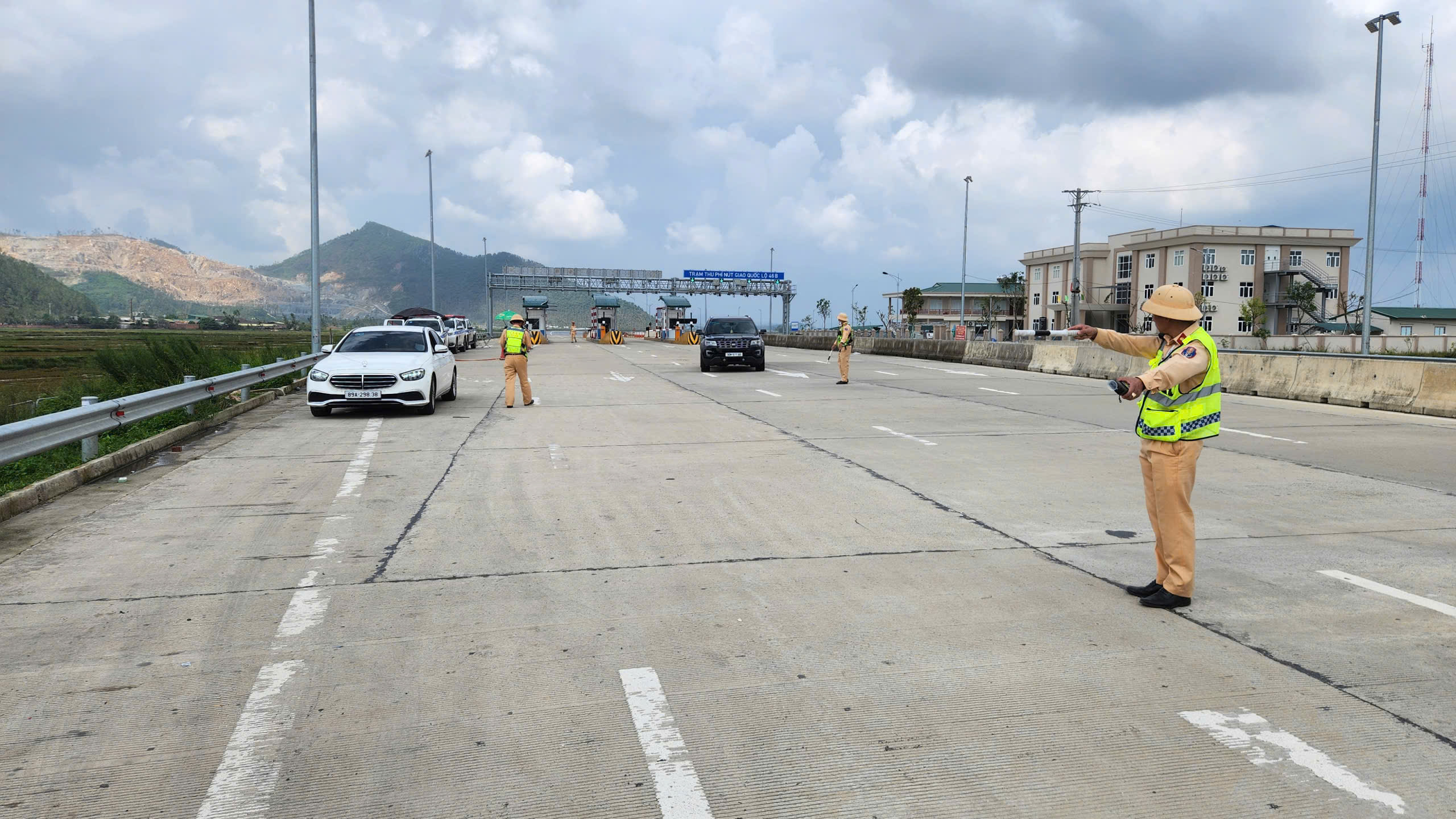 Lực lượng chức năng tăng cường xử lý vi phạm đối với phương tiện đi trên cao tốc. Ảnh: Lối ra nút giao quốc lộ 46B, tỉnh Nghệ An.