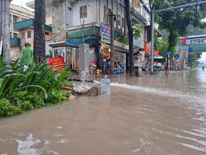Trên phố Nguyễn Chí Thanh, nước ngập vào nhà dân, có hộ dân dùng máy bơm hút nước trong nhà bơm liên tục ra ngoài. Một công nhân Cty Thoát nước 1 Hà Nội cho biết, mưa to từ 4h, đến 6h thì ngập nặng một số tuyến đường