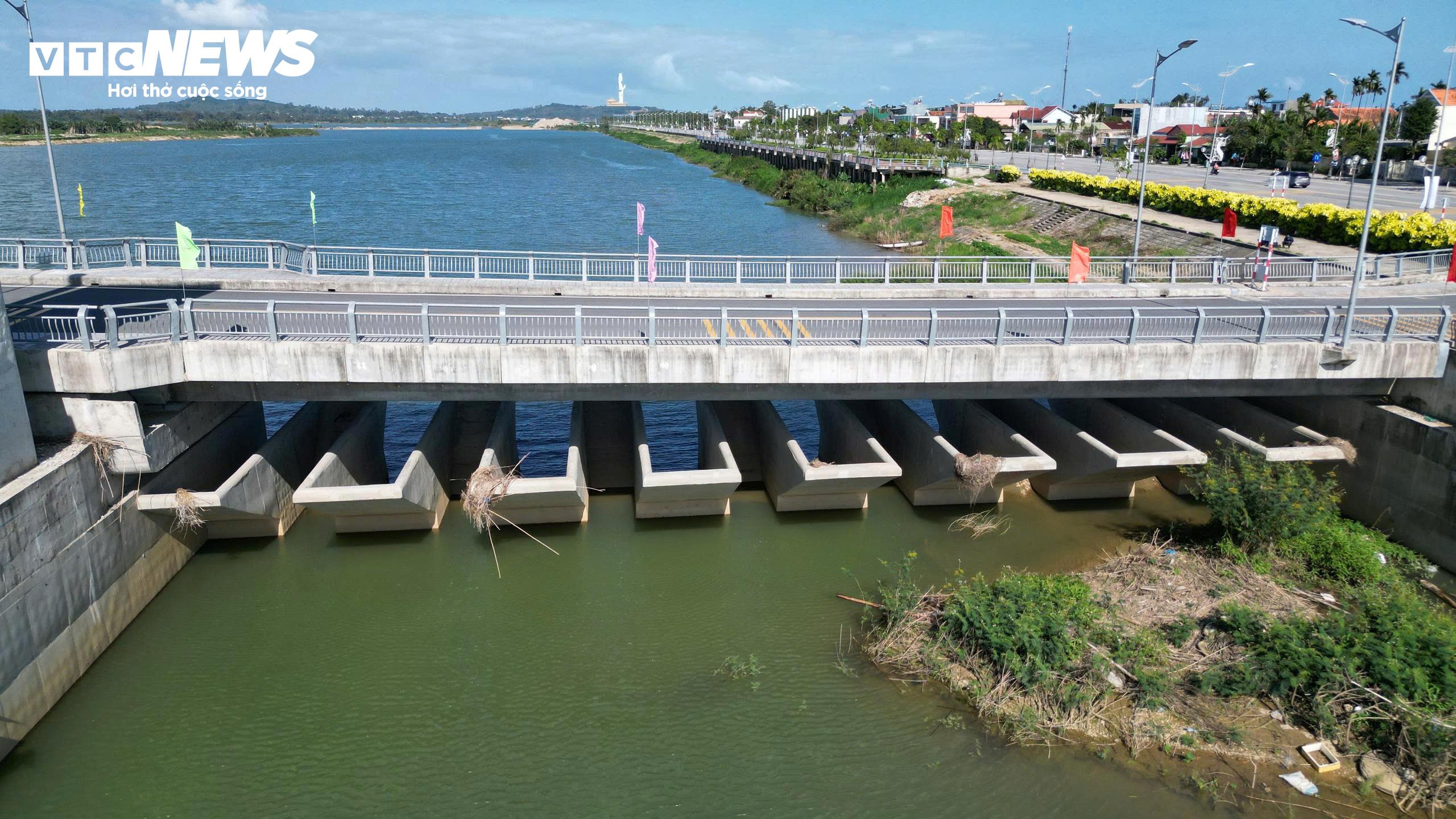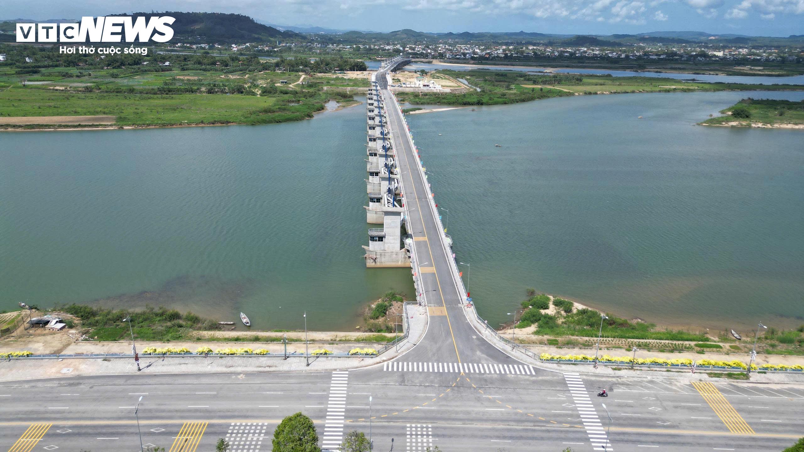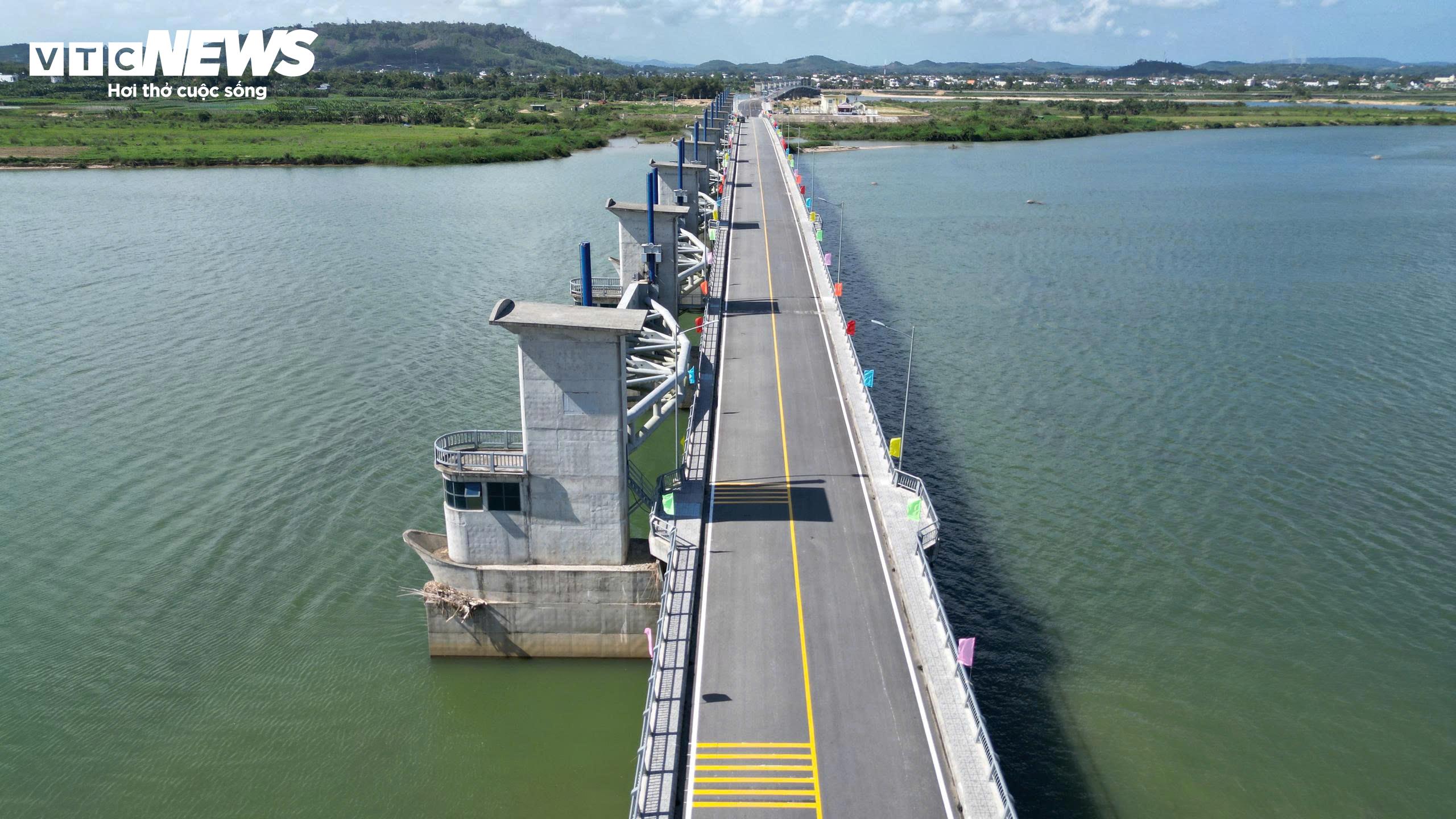 Công trình có kết cấu gồm cống ngăn sông với 19 khoang, tổng bề rộng gần 720m. Đập có cầu và đường với chiều dài 1.400m, trong đó cầu dài hơn 970m. Cầu trên đập giúp kết nối 2 bờ sông, tạo thuận lợi cho người dân qua lại giữa tuyến đường Hoàng Sa ở bờ Bắc và Trường Sa ở bờ Nam.