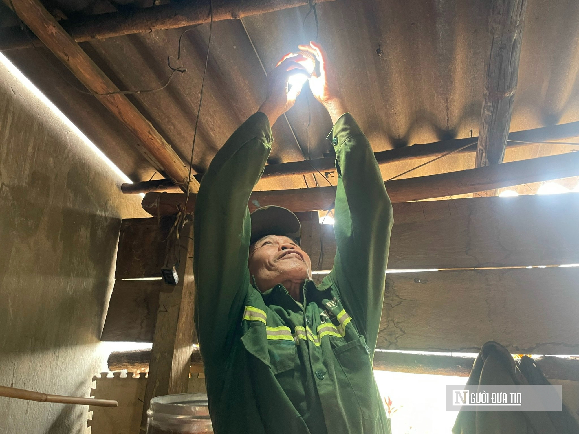 Thương bố mẹ sống trong cảnh tối tăm, con trai ông đầu tư gần 80 triệu đồng lắp hệ thống điện năng lượng mặt trời. Nhờ đó gia đình có thể thắp sáng và sạc điện thoại, song vẫn không đủ để vận hành thiết bị công suất lớn. "Mấy ngày mưa là hết điện, lại tối", ông cho biết.
