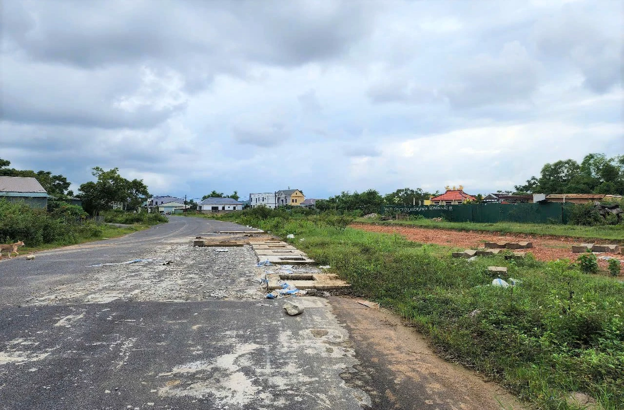 Có mặt tại đây vào ngày 13/10/2025, phóng viên nhận thấy khoảng 900m mặt đường đã được thảm nhựa; nhiều đoạn mặt bằng vẫn còn ngổn ngang đất đá, kết cấu bê tông; mặt bằng khu tái định cư triển khai dang dở... Điều đáng quan tâm là hiện trạng công trình như vậy nhưng lại không có hệ thống biển, dây, cọc tiêu cảnh báo để người dân nhận biết nguy hiểm.