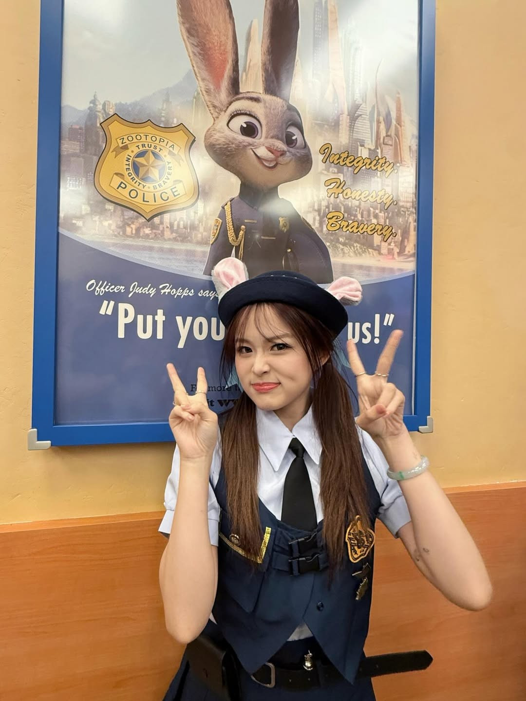 Nhanh chóng "bắt sóng" xu hướng, cô nàng hot girl Chao đã hóa thân thành nàng cảnh sát thỏ Judy Hopps cực kỳ đáng yêu khi khám phá công viên giải trí Disneyland Thượng Hải. (Ảnh: IGNV)