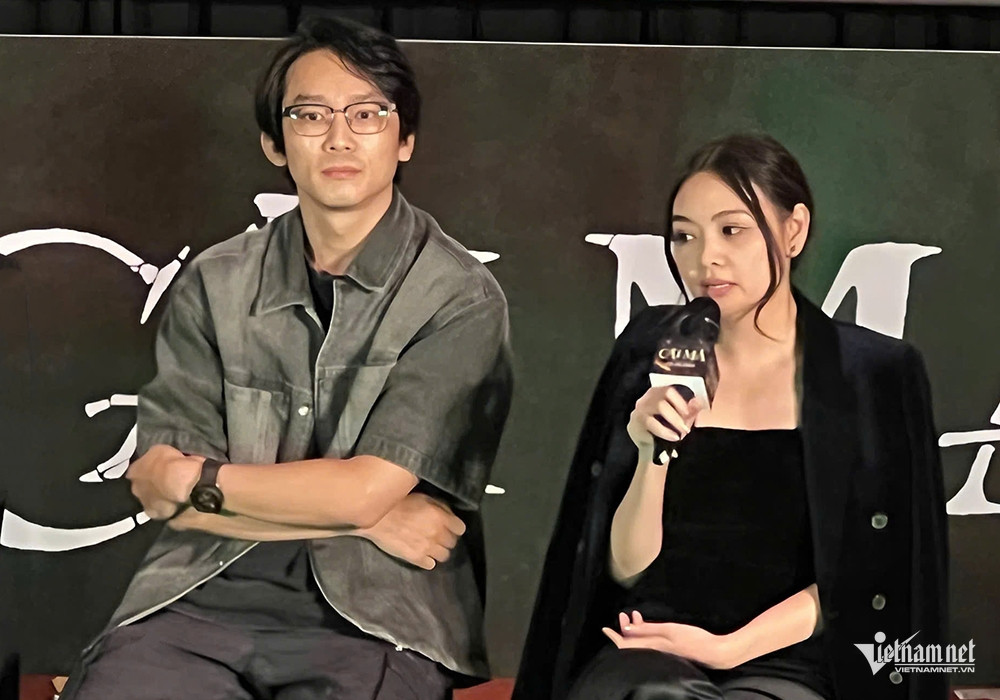 Đạo diễn Thắng Vũ và nhà sản xuất Emily chia sẻ tại sự kiện.