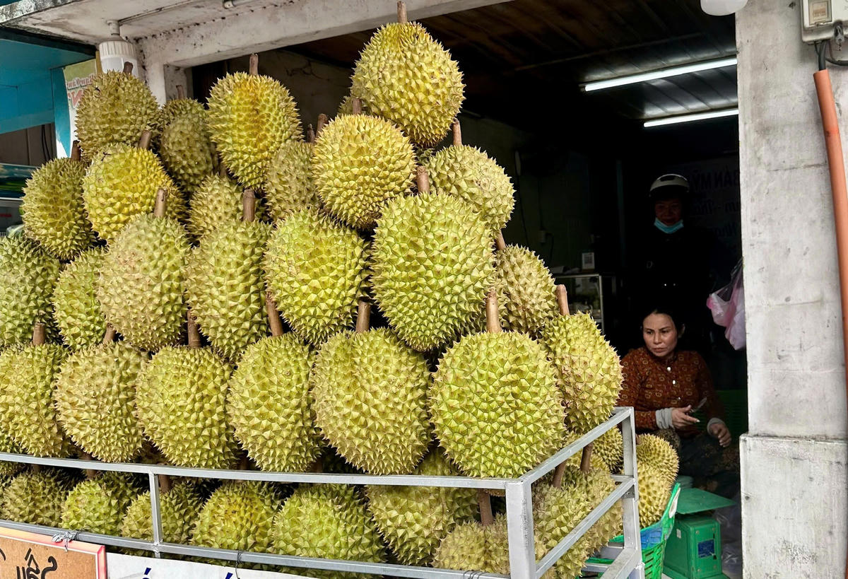 Sầu riêng được bày bán tại chợ ở Đồng Tháp. (Ảnh: Trung Ngãi).