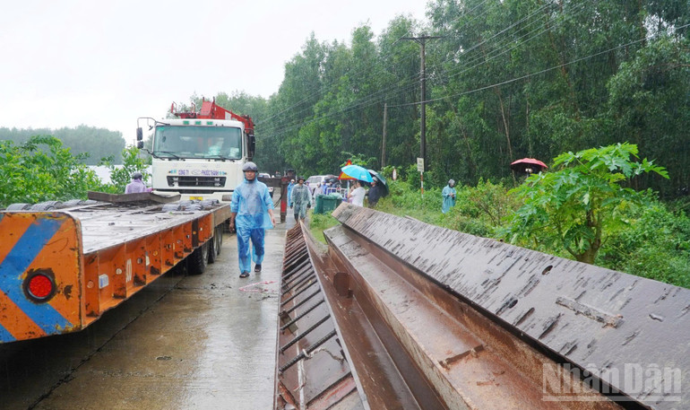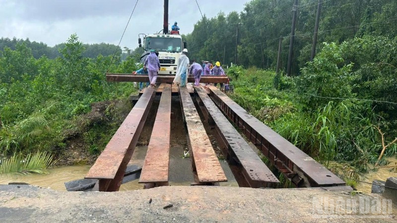 Đồng thời, cử lực lượng chức năng túc trực, điều tiết, hướng dẫn người dân và phương tiện qua lại trên cầu tạm an toàn.