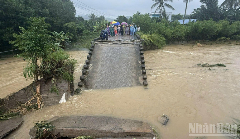 Phó Chủ tịch Ủy ban nhân dân tỉnh Quảng Ngãi kiểm tra hiện trường và chỉ đạo công tác khắc phục sự số sập cầu Cây Sung