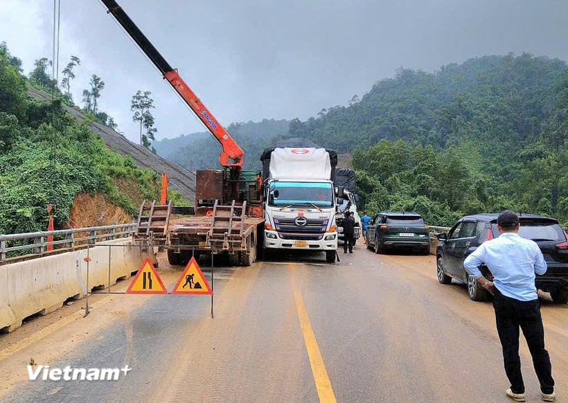 Tai nạn khiến cao tốc La Sơn - Hòa Liên ách tắc nhiều giờ liền. (Ảnh: PV/Vietnam+)