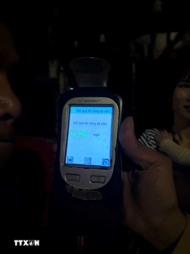Tài xế N.V.Đ điều khiển xe ôtô taxi công nghệ vi phạm nồng độ cồn. (Ảnh: TTXVN phát)