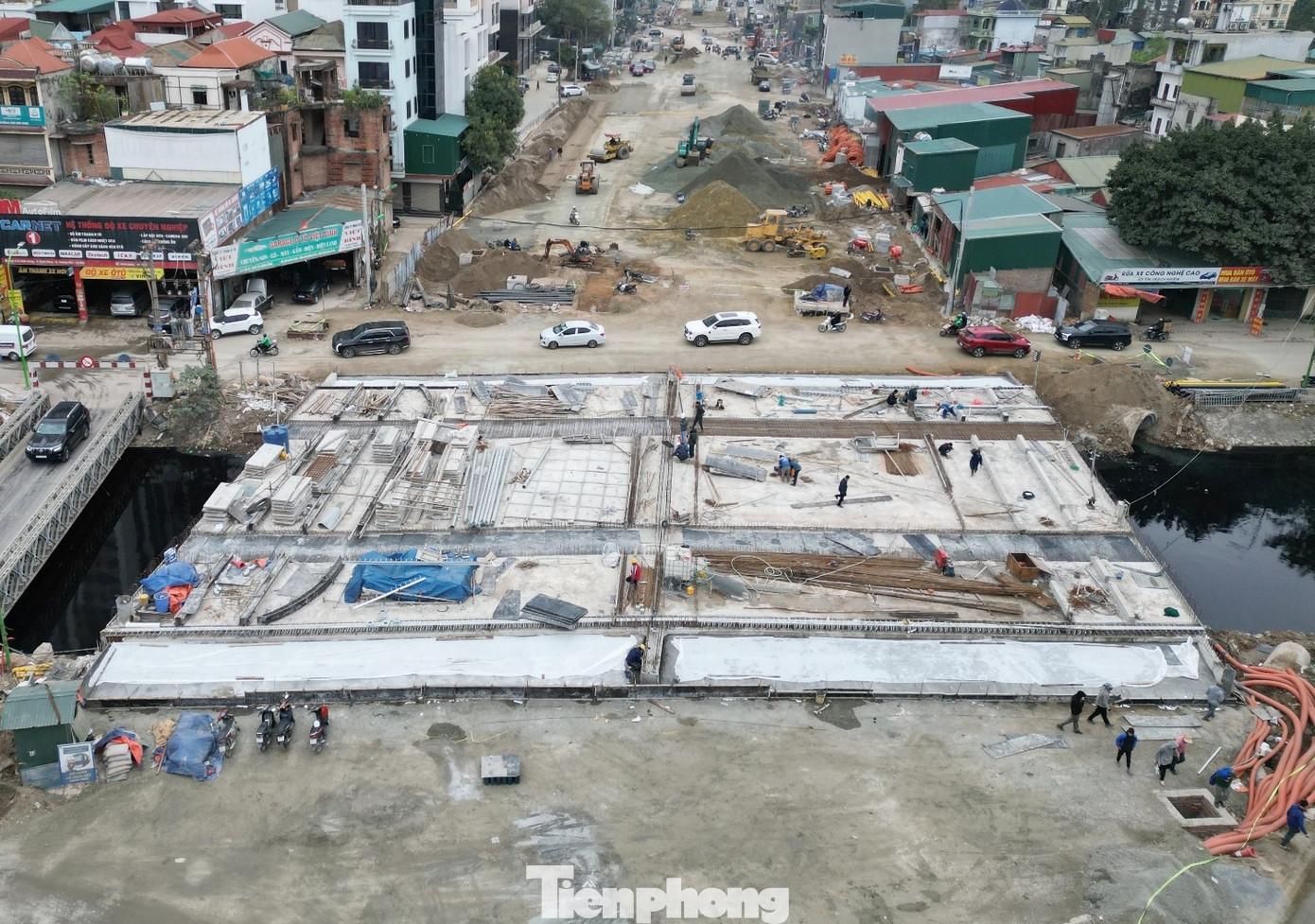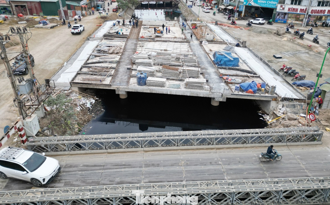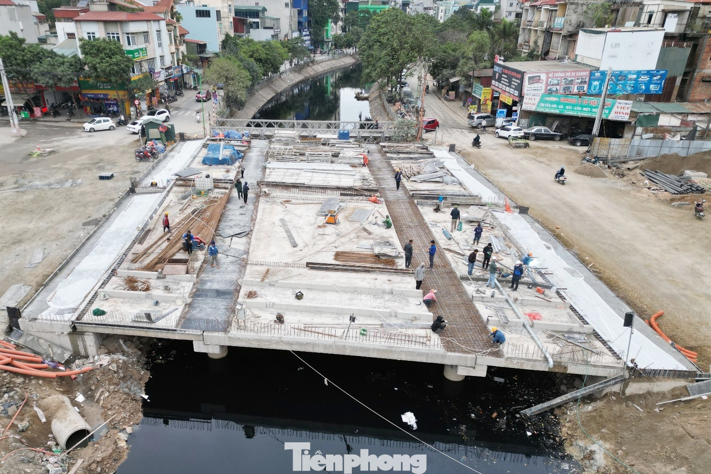 Cầu L3 vượt sông Lừ đang được hoàn thiện để nối thông với công trình hầm chui Vành đai 2,5 qua đường Giải Phóng (QL1A) - điểm cuối dự án.