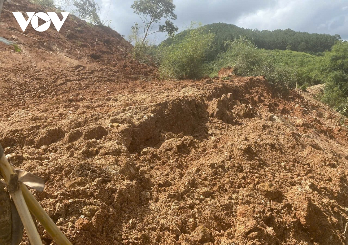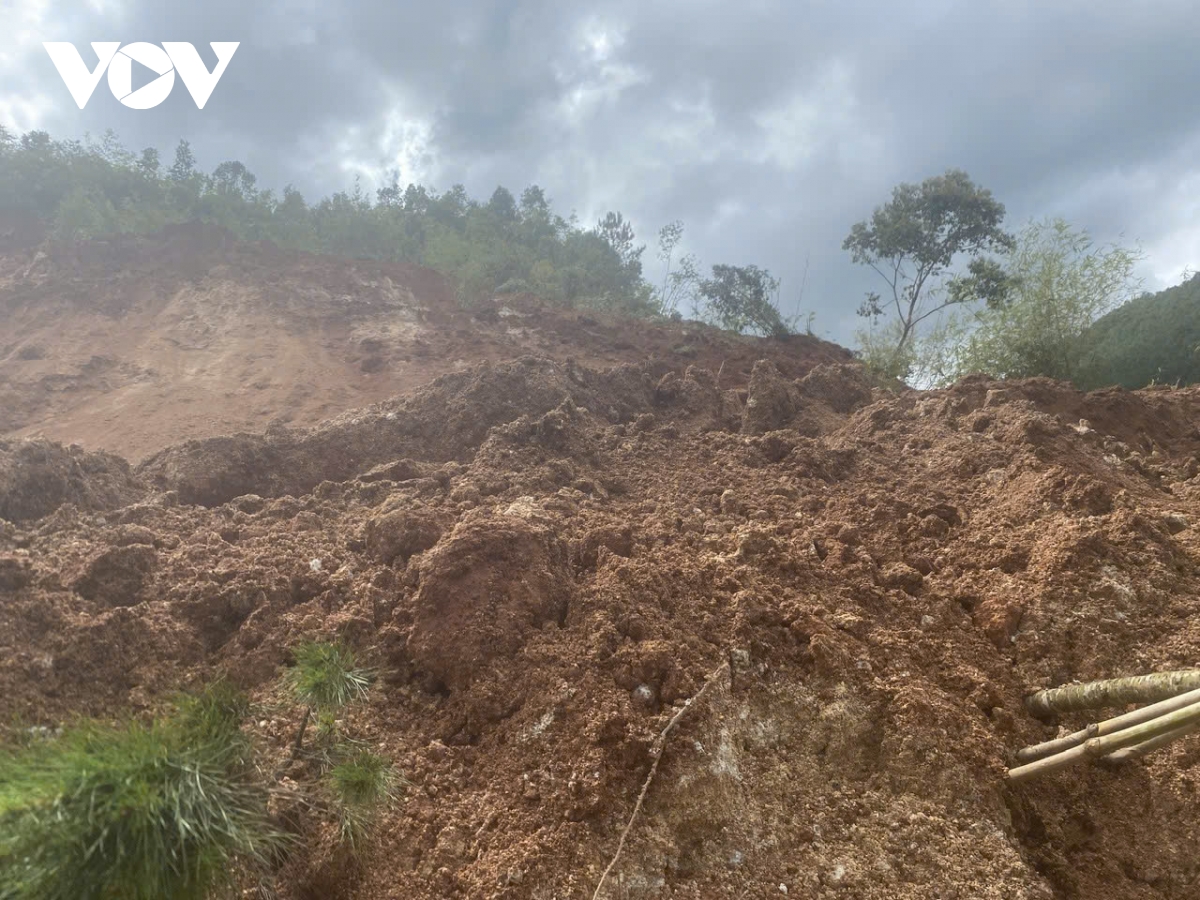 Khu vực sạt lở ở xã Măng Ri, tỉnh Quảng Ngãi.