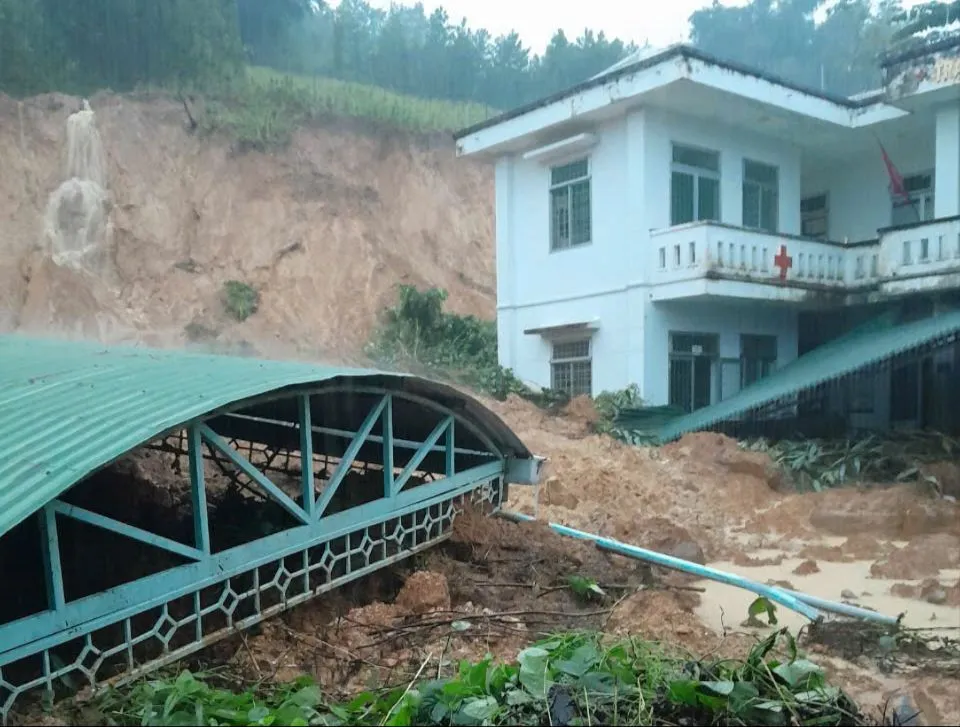 Sạt lở vùi lấp nhà xe của trạm y tế.