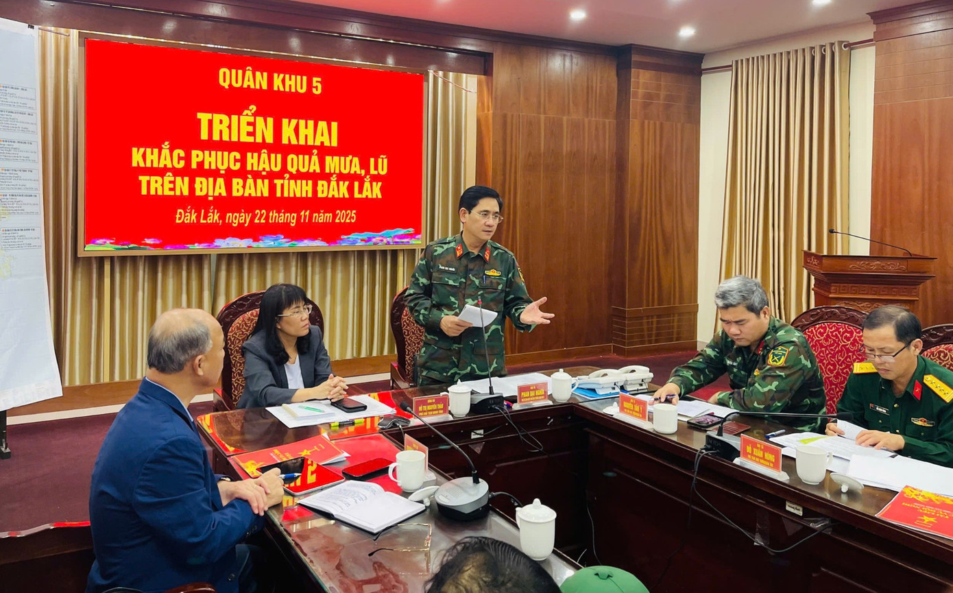 Tối 22/11, tại Ban Chỉ huy Phòng thủ Khu vực 6 - Tuy Hòa (Bộ Chỉ huy Quân sự tỉnh Đắk Lắk), Quân khu 5 tổ chức Hội nghị triển khai công tác khắc phục hậu quả mưa lũ trên địa bàn tỉnh Đắk Lắk.