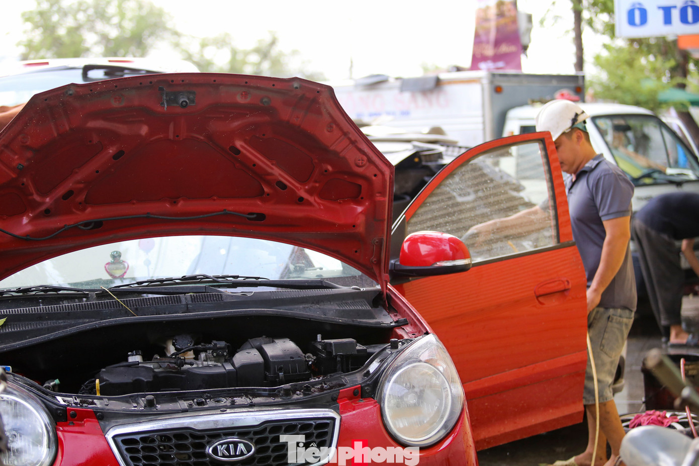 Những chiếc ô tô bị ngập nước được nhanh chóng cứu chữa. Ảnh: Trương Định.