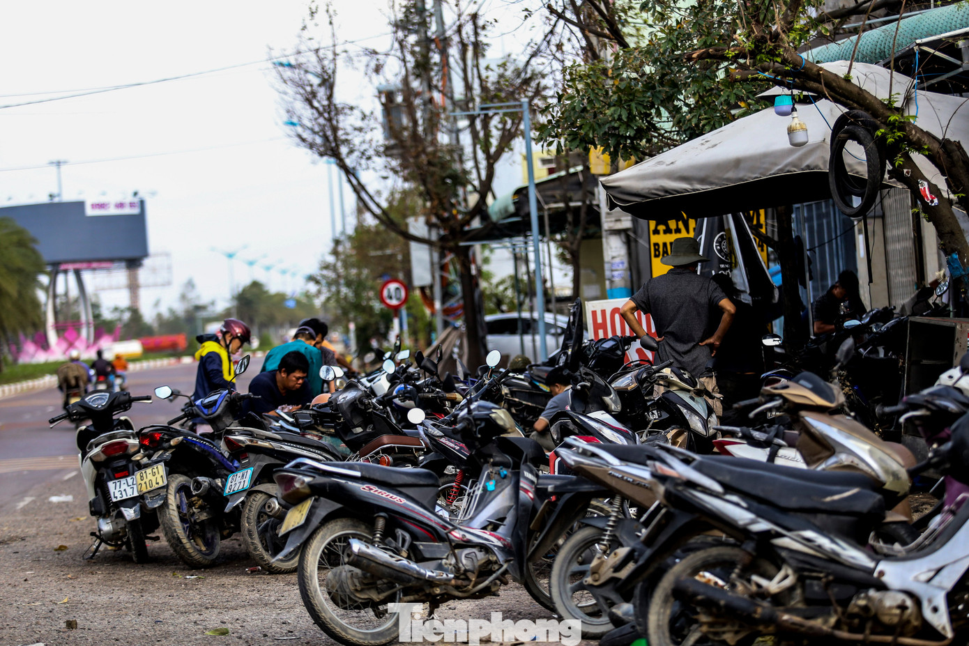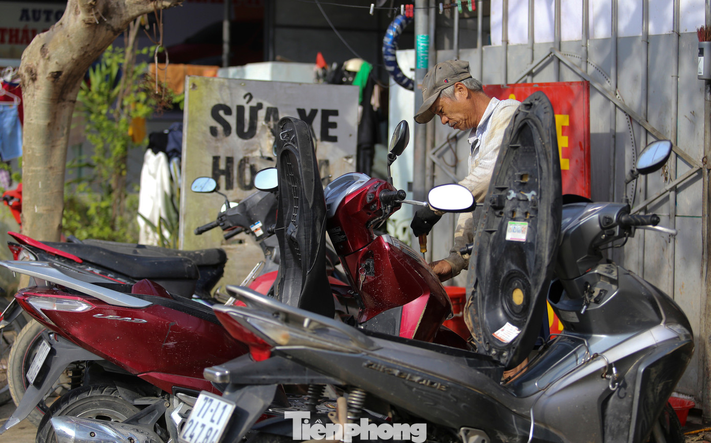Các tiệm sửa xe luôn trong tình trạng quá tải so với ngày thường, người dân kiên nhẫn chờ đợi. Ảnh: Trương Định.