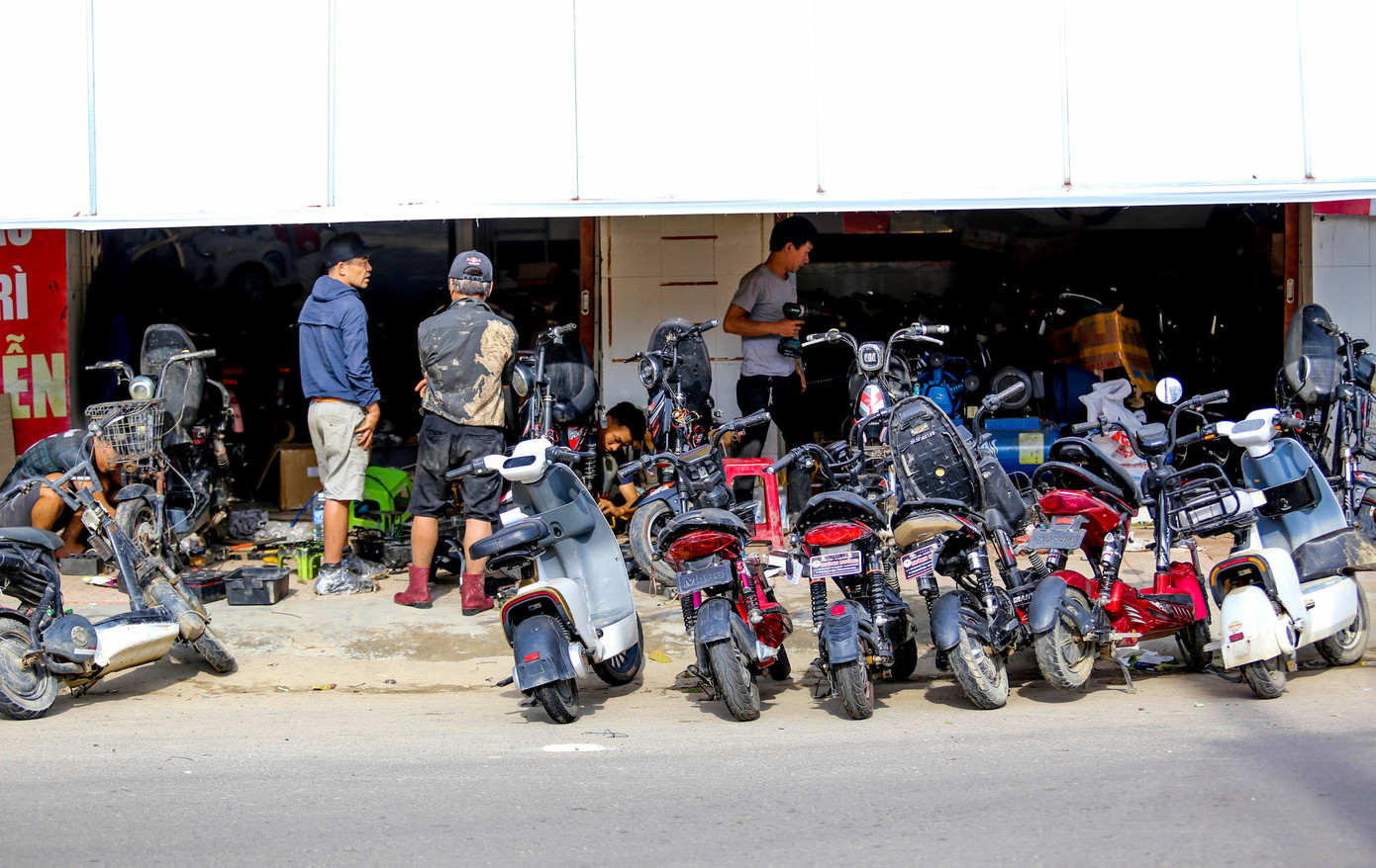 Cửa hàng sửa xe điện trong tình trạng quá tải. Ảnh: Trương Định.