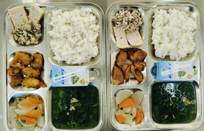 Suất ăn bán trú trưa 27/10 của học sinh trường Tiểu học Chu Minh. Ảnh: PHCC