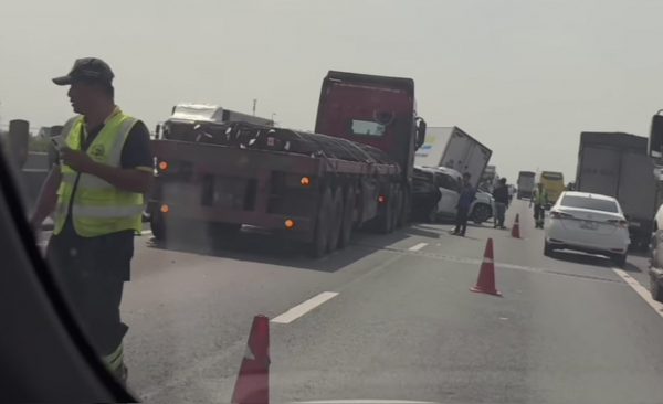Trước đó khoảng 12h 40’ cùng ngày, dòng phương tiện di chuyển trên cao tốc TP Hồ Chí Minh-Trung Lương, khi đến Km22+100, đoạn thuộc xã Bình Đức, tỉnh Tây Ninh thì xảy ra va chạm giữa 6 phương tiện gồm 1 xe đầu kéo, 3 xe ô tô, 1 xe 16 chỗ và 1 xe tải.