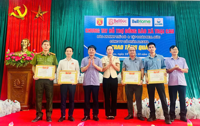 Trước đó, vào ngày 14/10, Đoàn công tác xã hội của An ninh Thủ đô đã phối hợp cùng Tập đoàn Bell Đức, Bell Home, Công ty nước kiềm Alkawa tới thăm hỏi, động viên và trao tận tay 300 suất quà cho các hộ dân có hoàn cảnh khó khăn và CBCS Công an xã Đa Phúc - lực lượng tuyến đầu giúp dân phòng, chống và khắc phục hậu quả sau bão lũ.