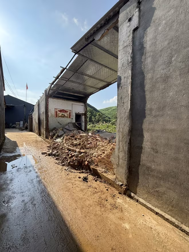 Ngôi nhà của một người dân Trại Cau sau lũ