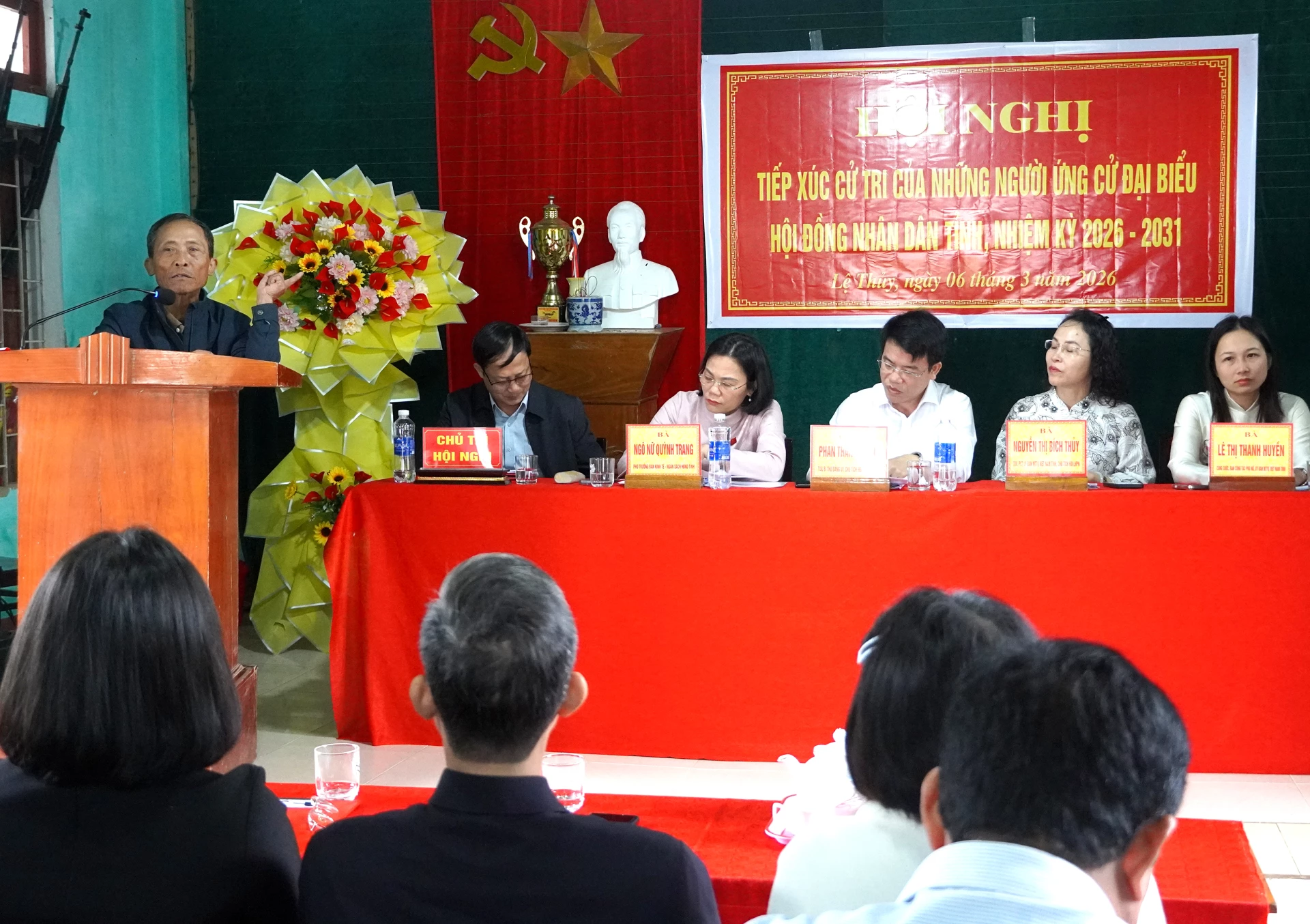 Tại đơn vị bầu cử số 11, có 5 ứng cử viên đại biểu HĐND tỉnh, nhiệm kỳ 2026-2031, gồm: Bà Nguyễn Thị Bích Thủy, Tỉnh ủy viên, Ủy viên Ban Thường vụ Đảng ủy, Chủ nhiệm Ủy ban Kiểm tra Đảng ủy MTTQ Việt Nam tỉnh, Phó Chủ tịch Ủy ban MTTQ Việt Nam tỉnh, Chủ tịch Hội Liên hiệp Phụ nữ tỉnh Quảng Trị; bà Ngô Nữ Quỳnh Trang, Phó trưởng Ban Kinh tế-Ngân sách, HĐND tỉnh; ông Phan Thanh Cường, Tỉnh ủy viên, Bí thư Đảng ủy, Chủ tịch HĐND xã Lệ Thủy; bà Lê Thị Thanh Huyền, công chức Ban Công tác Phụ nữ, cơ quan Ủy ban MTTQ Việt Nam tỉnh; bà Trần Thị Thu, công chức Phòng Dân nguyện-Tổng hợp, Văn phòng Đoàn ĐBQH và HĐND tỉnh.