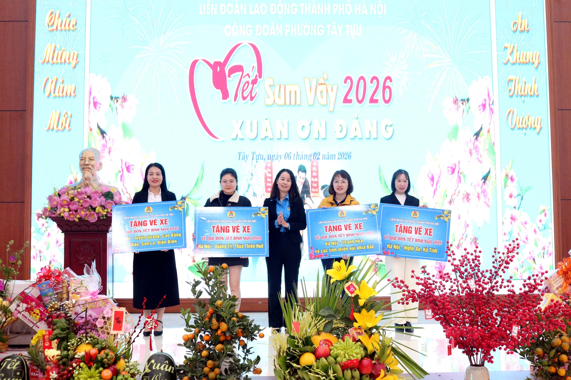 Đặc biệt, Chương trình “Tết sum vầy - Xuân ơn Đảng” được tổ chức thiết thực với nhiều hoạt động tạo không khí vui tươi, gắn kết trong dịp đầu xuân như: Trao quà cho đoàn viên, người lao động có hoàn cảnh khó khăn, thi bày mâm ngũ quả, bốc thăm may mắn, tổ chức “Bữa cơm tất niên Công đoàn” tại các đơn vị; hỗ trợ vé xe cho đoàn viên, người lao động về quê đón Tết...
