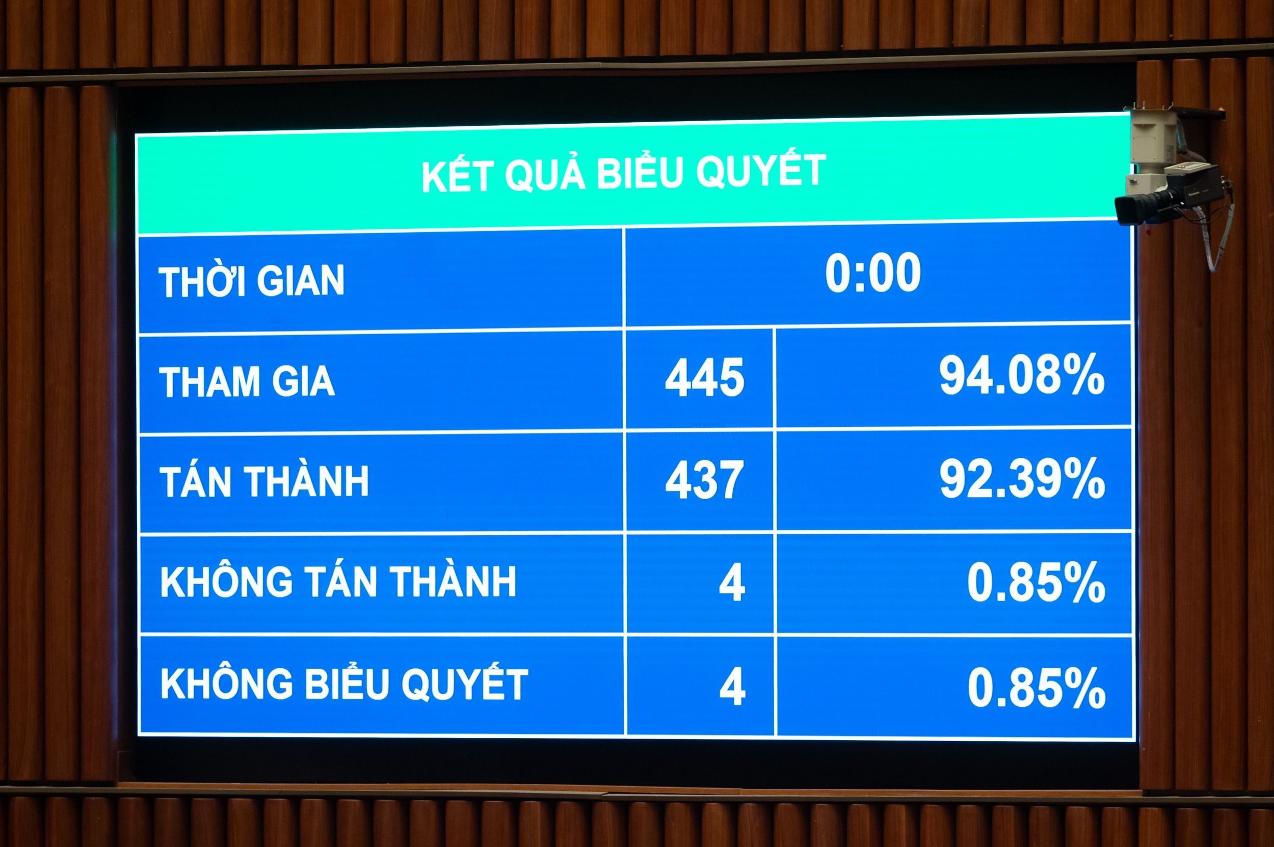 Quốc hội biểu quyết thông qua Luật sửa đổi, bổ sung một số điều của Luật Giáo dục, với tỷ lệ 437/445 tổng số ĐBQH tán thành. Ảnh: Phạm Thắng