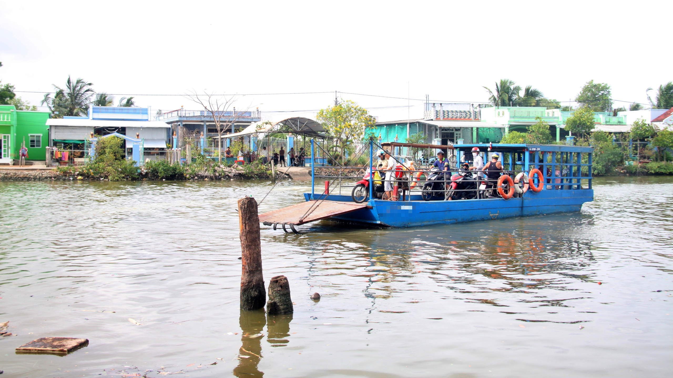 Người dân qua lại hai bên bờ sông, muốn đi nhanh phải đi qua đò ngang.