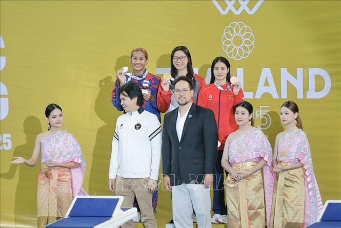 VĐV Võ Thị Mỹ Tiên giành HCĐ nội dung bơi 200m hỗn hợp. Ảnh: Minh Quyết/PV TTXVN tại Thái Lan