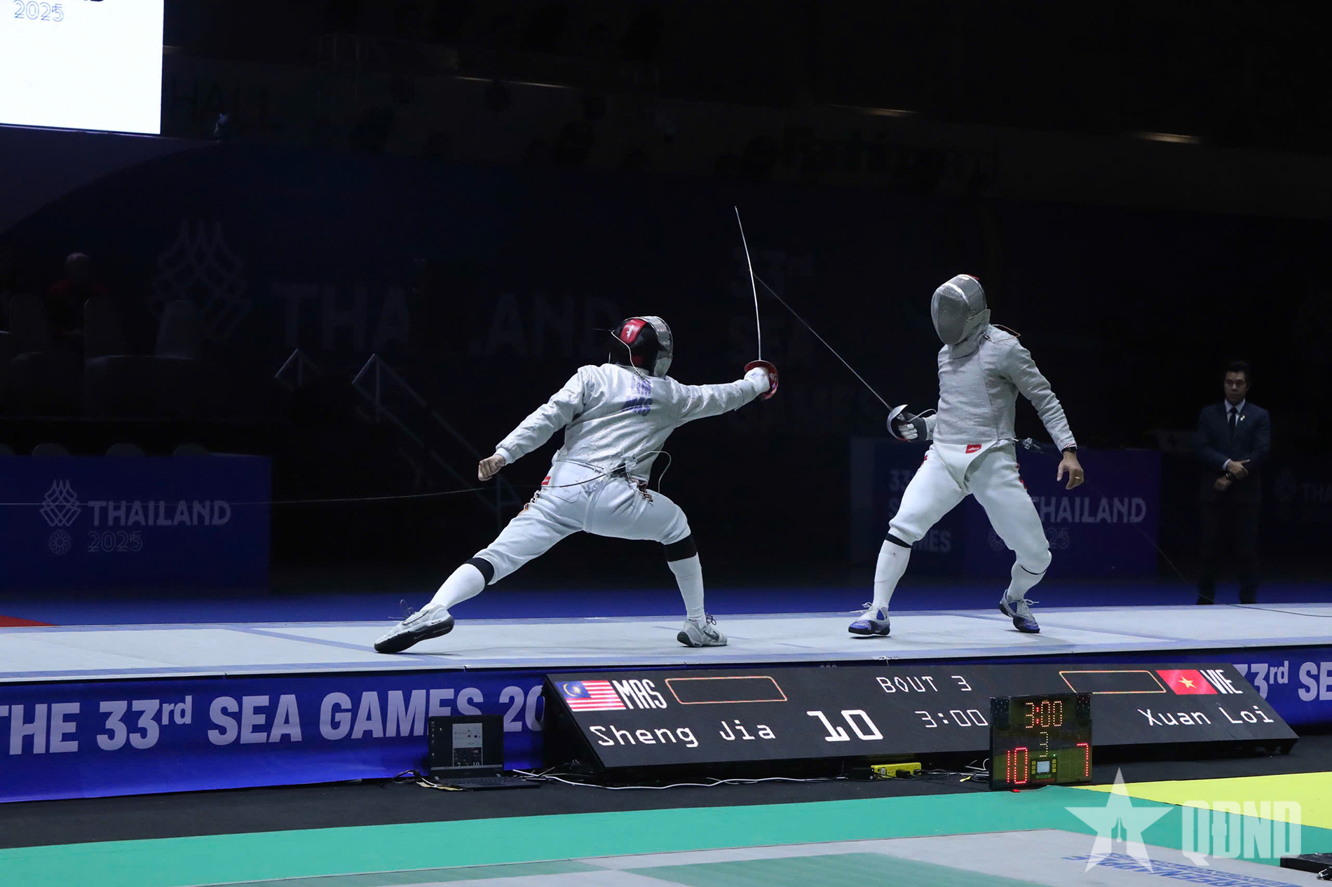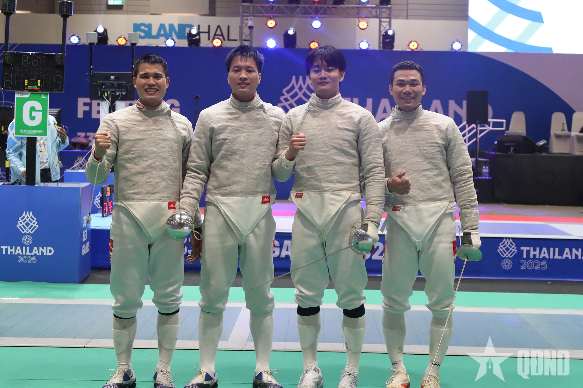 Chiều 19-12, tại Thái Lan, đội tuyển đấu kiếm Việt Nam tranh tài ở trận chung kết nội dung đồng đội nam kiếm chém tại SEA Games 33.