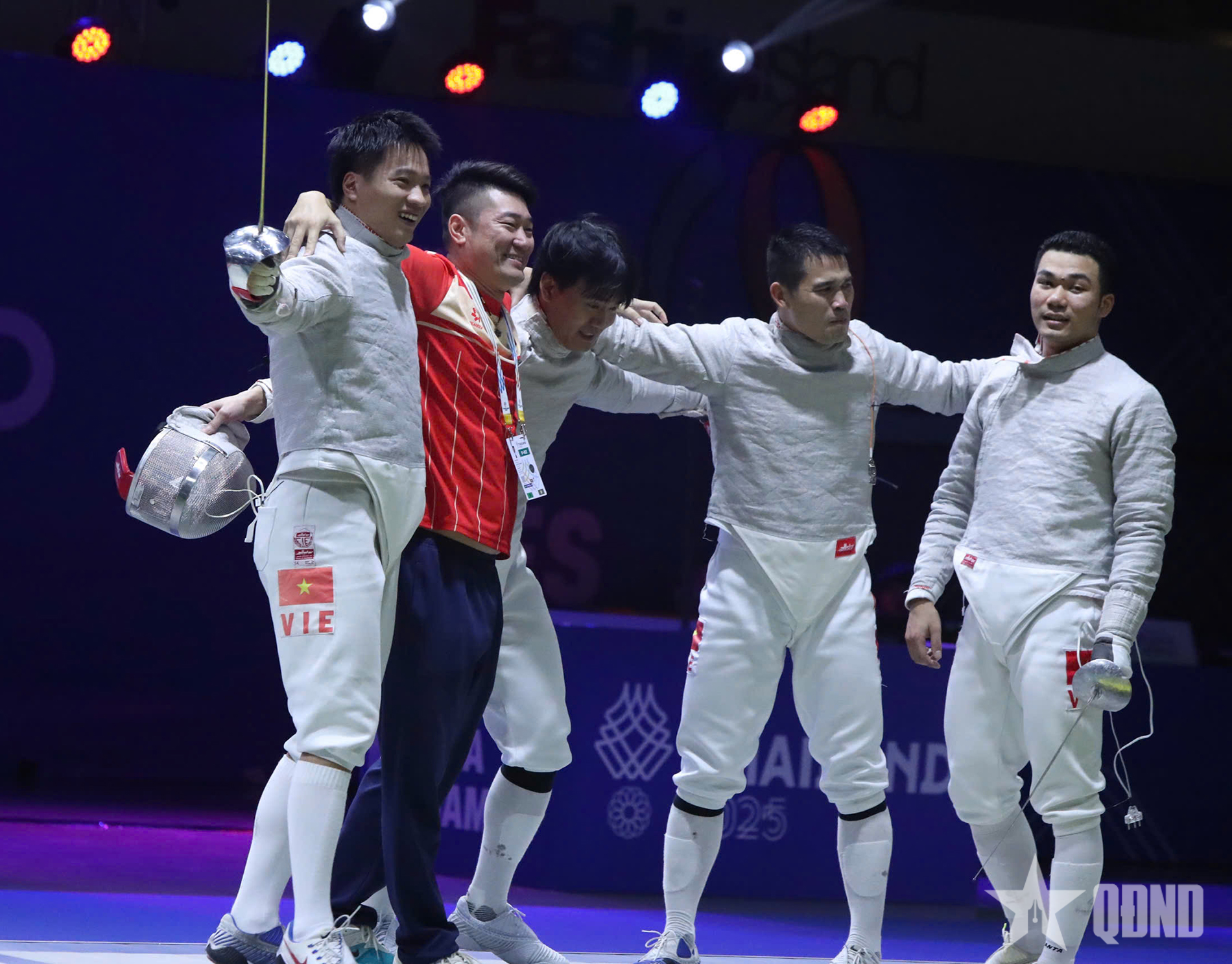 Với phong độ xuất sắc, các kiếm thủ Nguyễn Văn Quyết, Nguyễn Xuân Lợi, Lê Văn Bang, Phan Ánh Dương xuất sắc đánh bại đội Malaysia với tỷ số 45-27 để giành huy chương vàng.