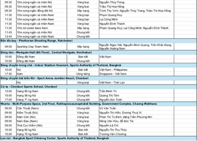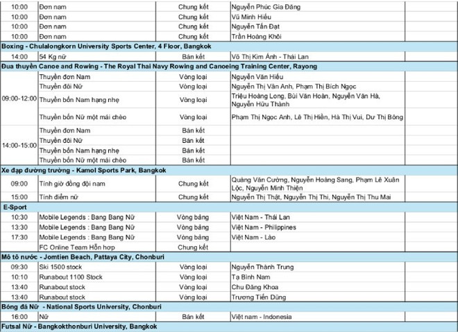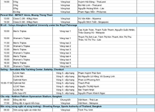 Ngoài những bộ môn và các gương mặt kể trên, đoàn thể thao Việt Nam hôm nay còn tham dự nhiều môn thi đấu và tất cả đều được kỳ vọng sẽ thành công để góp vào thành tích chung của đoàn tại SEA Games 33.