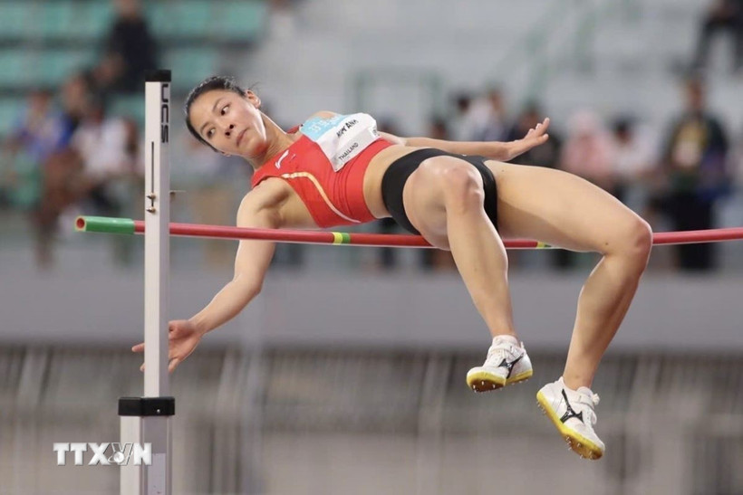 Bùi Kim Anh vượt qua mức xà 1m86, giành HCV nhảy cao tại SEA Games 33. (Ảnh: Minh Quyết/TTXVN)