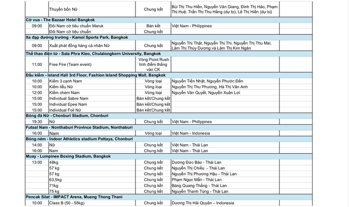 Cờ vua, cử tạ, thể thao điện tử, xe đạp, boxing có khả năng tranh chấp huy chương cao, bên cạnh cuộc tranh tài được chờ đợi: Chung kết bóng đá nữ giữa Việt Nam và Philippines…