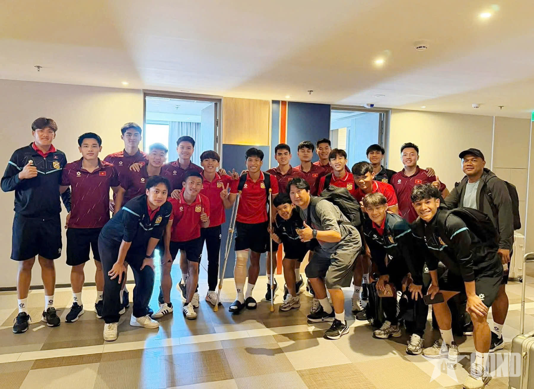 Trước đó, toàn đội đã đến sân xem trực tiếp U22 Malaysia thi đấu với U22 Lào.