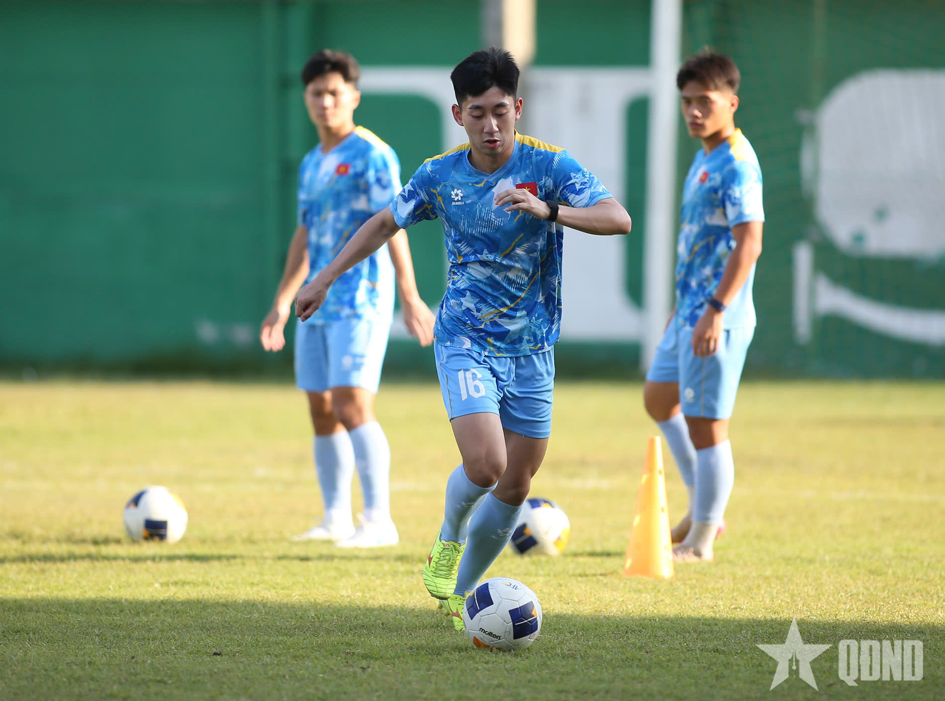 Buổi tập của U22 Việt Nam diễn ra trong điều kiện thời tiết khá nắng.