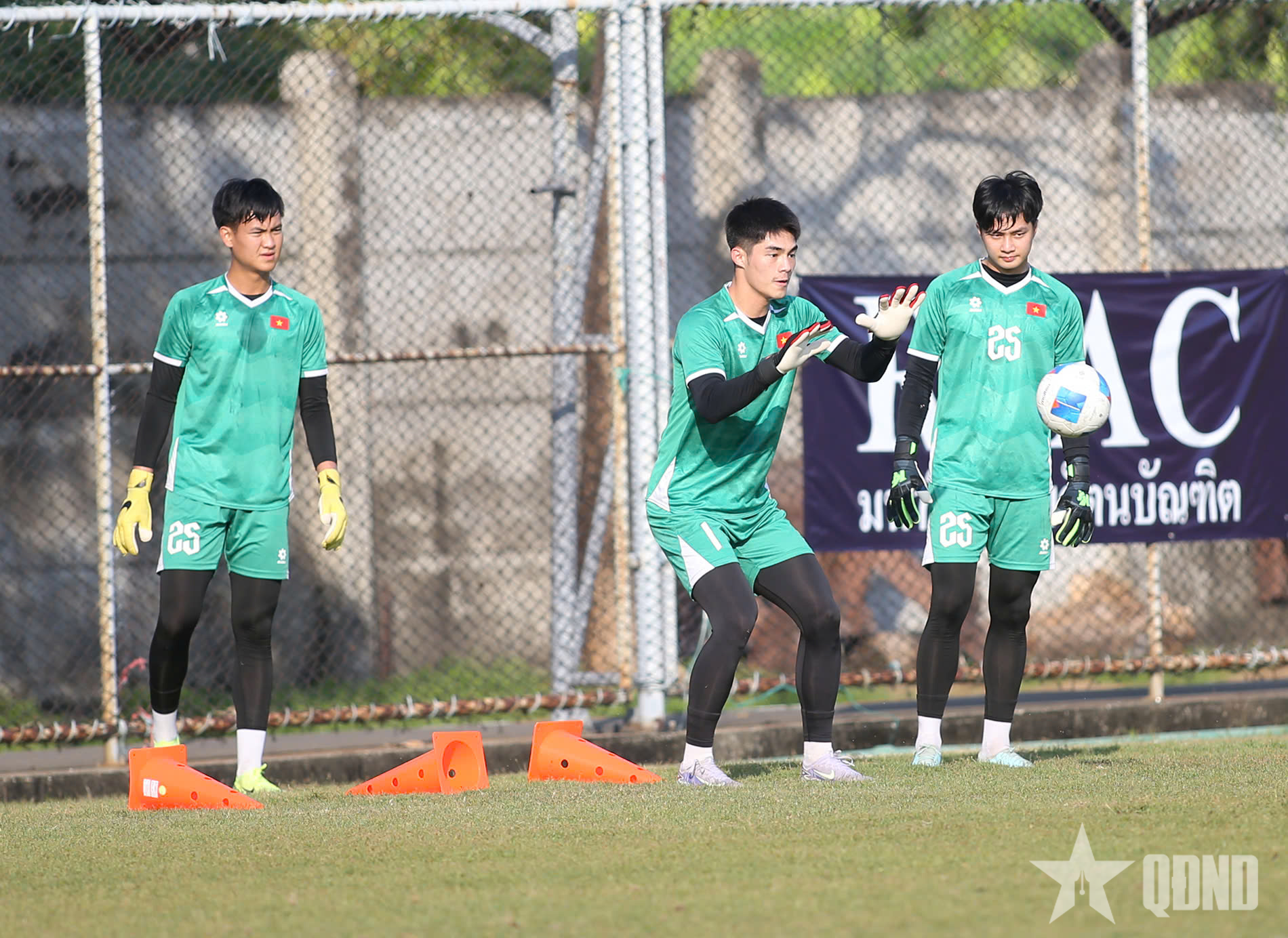 Các thủ môn tập luyện.