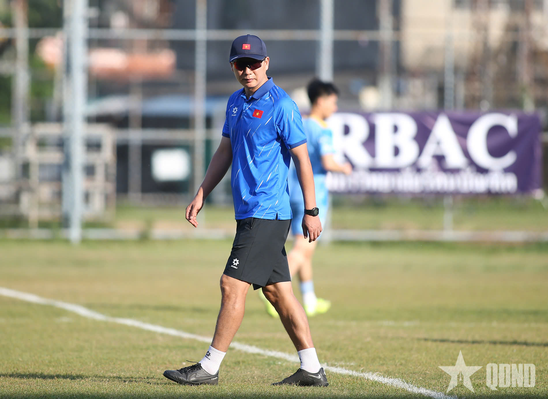 Huấn luyện viên Kim Sang-sik theo sát buổi tập.