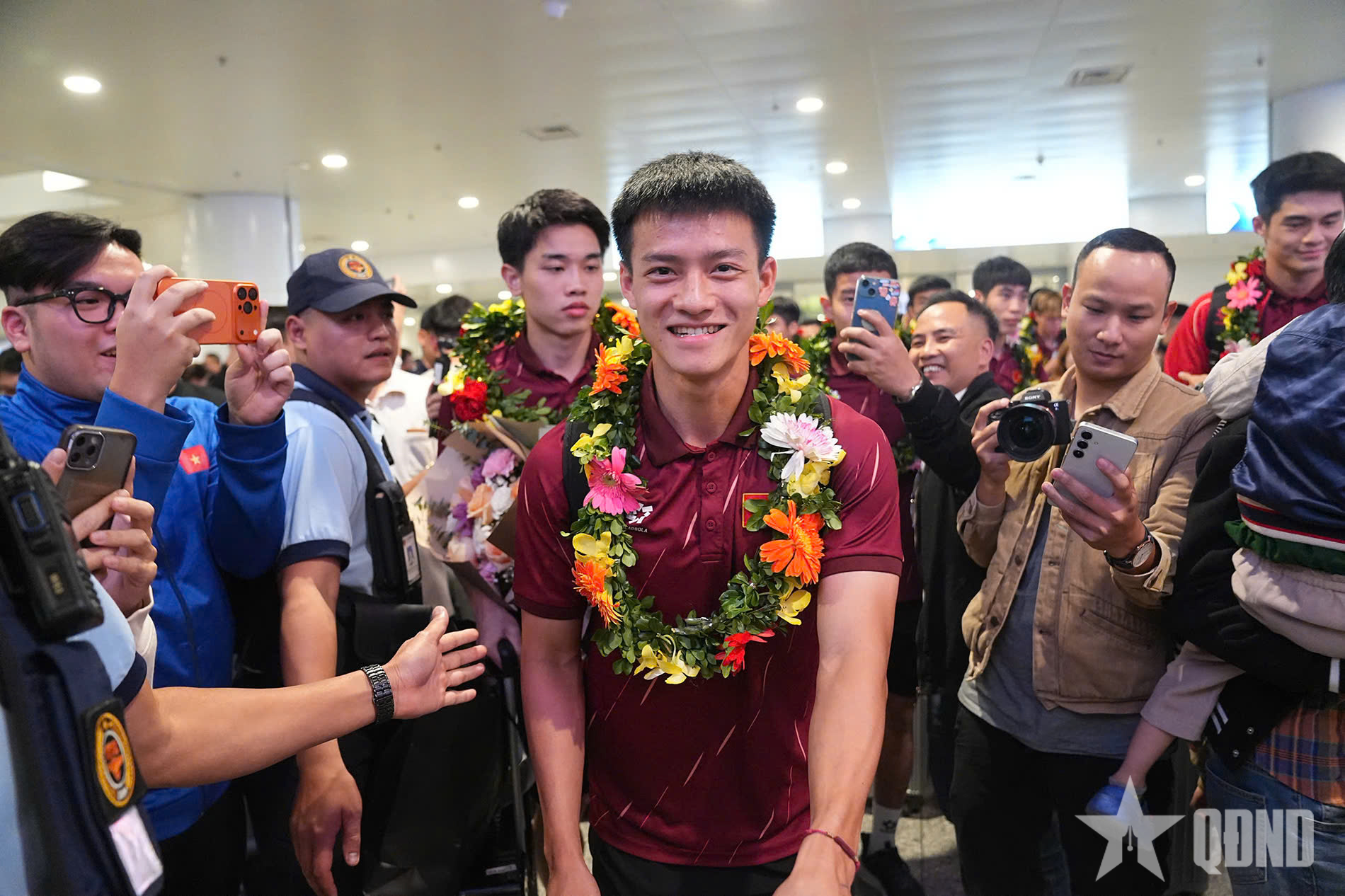 Các cầu thủ U22 Việt Nam nhận sự chào đón nồng nhiệt của người hâm mộ.