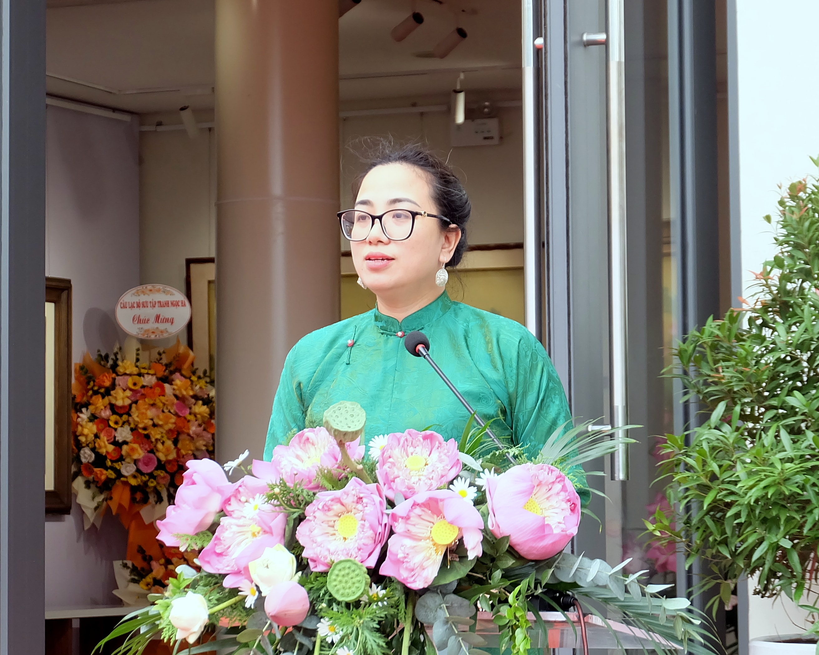 Trưởng Ban quản lý hồ Hoàn Kiếm và phố cổ Hà Nội Ngô Thị Thùy Dương phát biểu khai mạc triển lãm