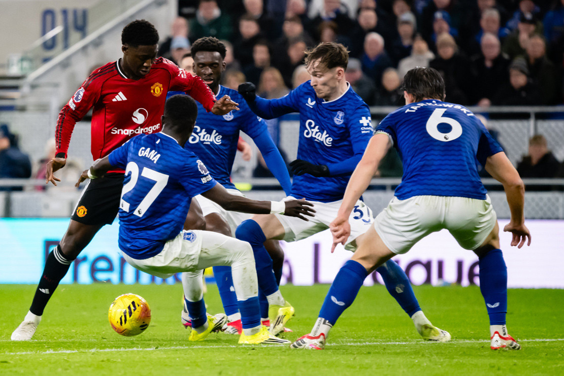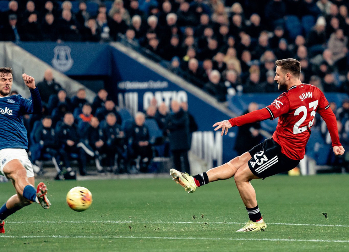 Cầu thủ Everton ngăn chặn cú sút của Luke Shaw