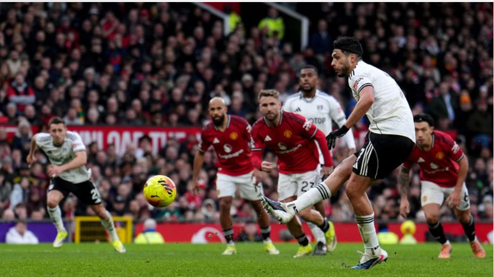 Jimenez rút ngắn tỷ số xuống 1-2 cho Fulham trên chấm phạt đền. Ảnh: Sky Sports